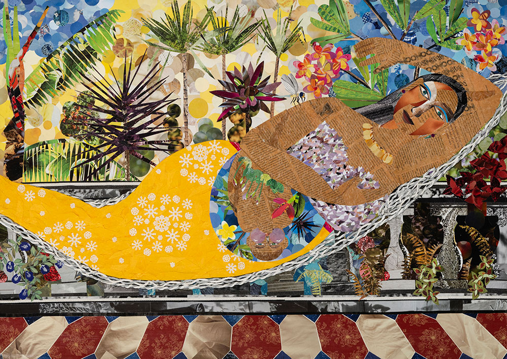 Ms Joanna Maneckji was awarded the 2024 Most Promising Artist of the Year (Singapore) under the Emerging Artist Category for her artwork, “That Blessed Mood”. Composed of paper collage on card paper, the artwork depicts a mother and child reclining in a hammock, peacefully enjoying a sunny afternoon in a garden. Beyond the joyous and contented image of motherhood, the antique photo album paper used as the mother’s skin disguises a layer of paper from a Financial Times article with the words, “I’m not afraid”. These powerful words signify a mother’s strength beneath fragility, a poignant reminder of the resilience required in the journey of motherhood.