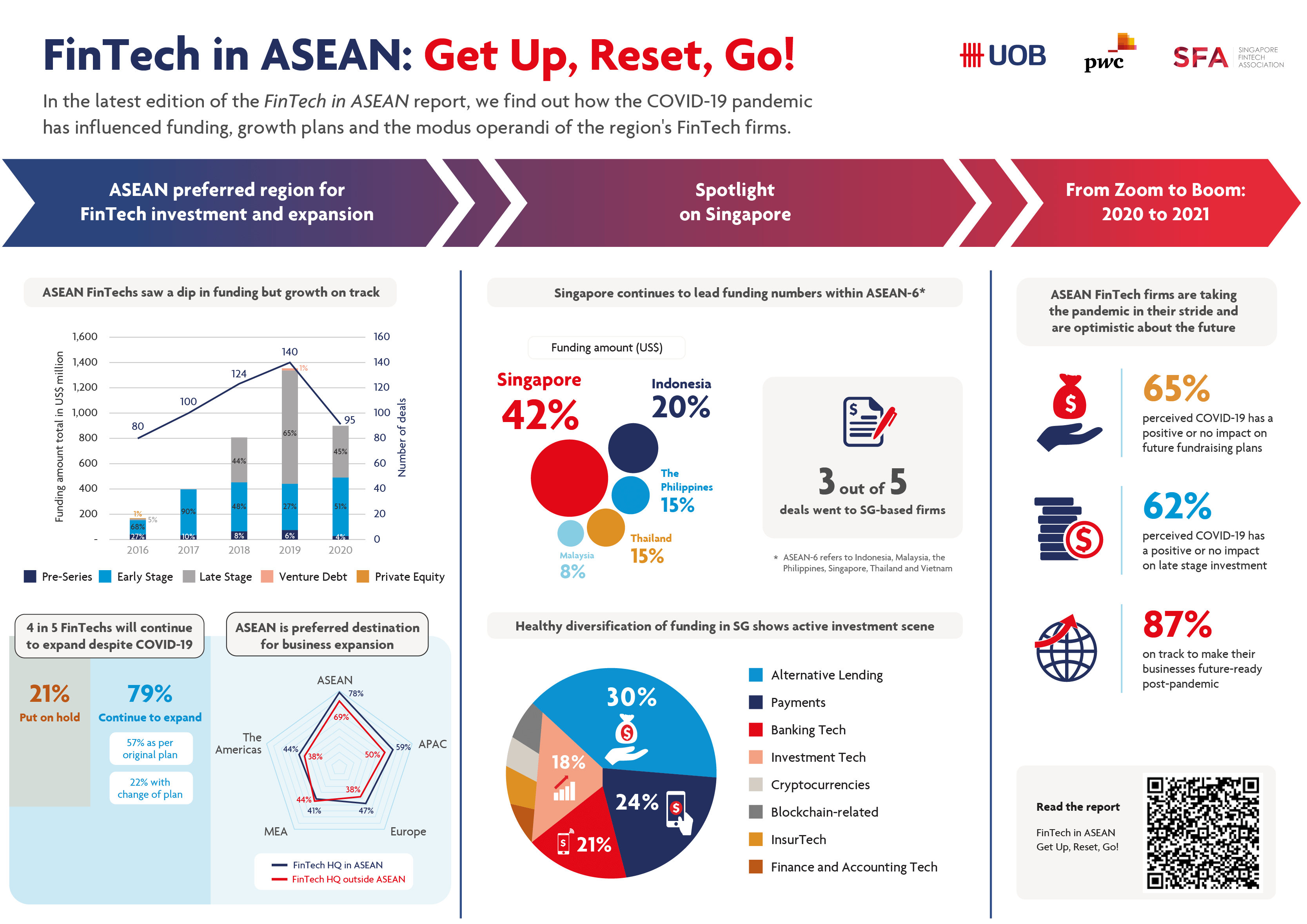1 The survey was conducted by UOB, PwC and SFA in September 2020 among 109 FinTech firms across six ASEAN markets including Indonesia, Malaysia, Singapore, the Philippines, Thailand and Vietnam.